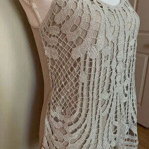 Express tank top with lace front, slightly metallic sheen as pictured, color is between gray and tan