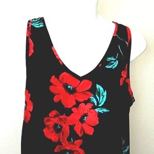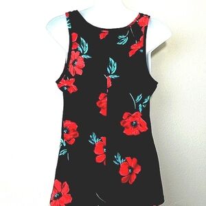Express tank top black w Floral red blue Print flowy Sleeveless blouse EUC