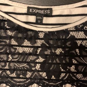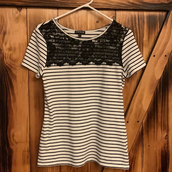 Express tee, black and white striped with lace detail Like new, smoke free home