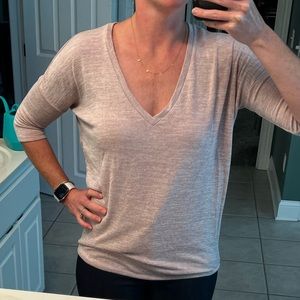 Pinkish lilac thin sweater from express. 3/4 sleeve. Longer in back to cover behind, so could wear with leggings. In perfect condition.