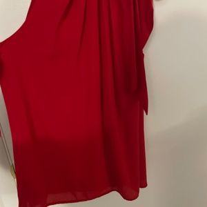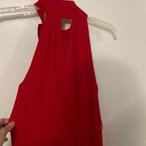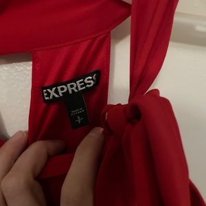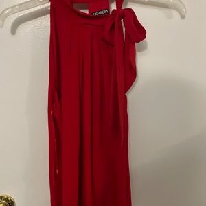 It’s a tie neck tank top that is a dressy material. Size small. It’s express and red color. No known flaws. Polyester material.