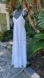 This pretty dress starts with adjustable spaghetti straps at tie and lovely bows. The skirt ruffles out and ever larger tears from the waistband. Over layer is semi-here but the dress is fully lined and an excellent condition.