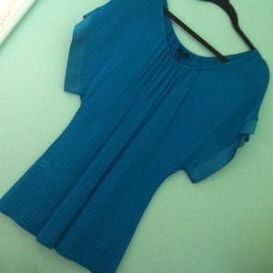 Silky Express top with sinched neckline. Fitted and comfortable at the same time. Short sleeves that hang down and would look so cute with a lacy bra underneath or cami. In perfect conditon only worn once for a few hours.