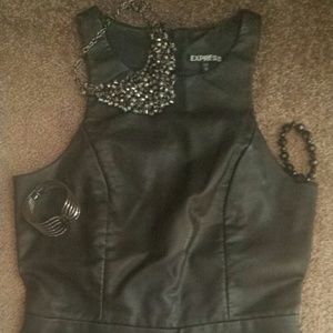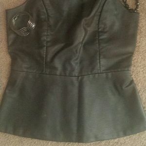 Black extra small top...mainly for evening and night wear....I don't think its leather but it looks very close to it..see pics for details!🎀