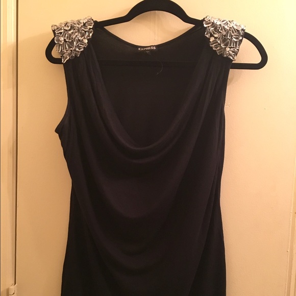 Express top with clear beads on both shoulder.... Very sexy on