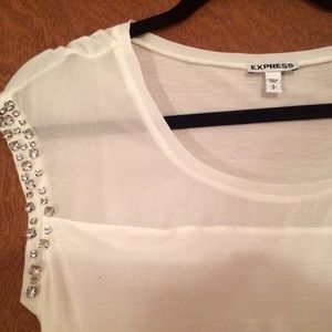 Cream short sleeve top with embellishments on sleeves
