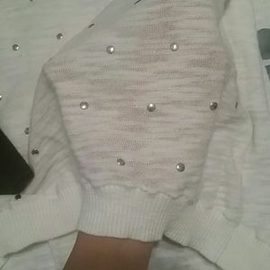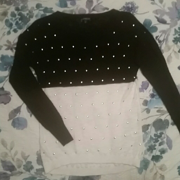 Black and white studded sweater top from Express..it is a thin knit material..white part is a little sheer (see pic)..it has some piling but not very noticeable
