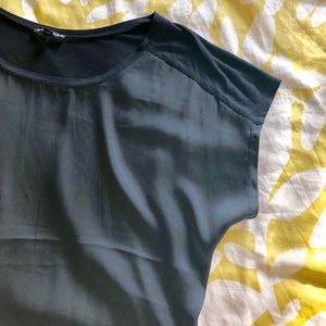 Express black top in size small. Made of rayon and polyester but the front is a silk like material and the back feels like a super soft cotton.