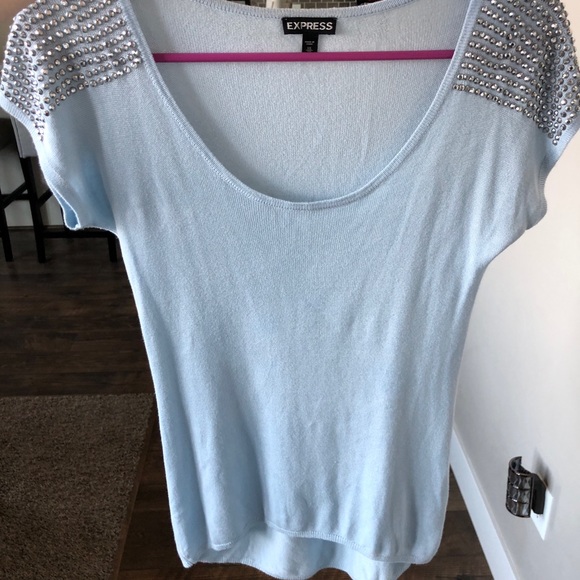 Powder blue express top with silver stud decor on sleeves. Never been worn- Size XS