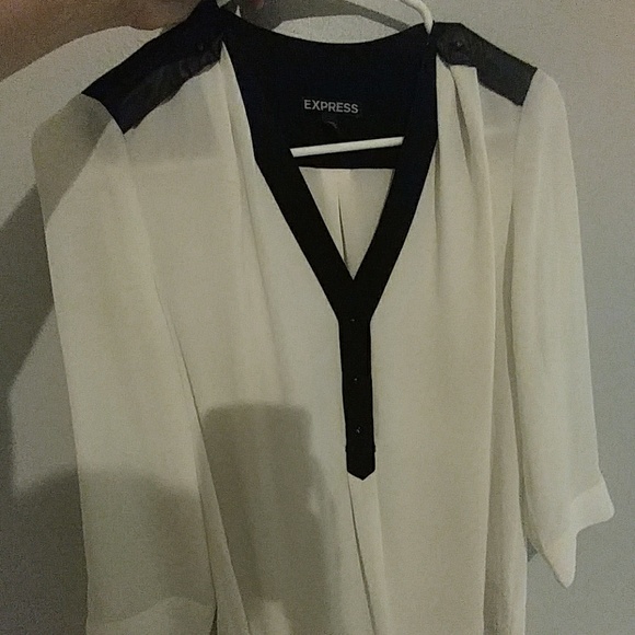 Used express tops. Needs to be dry cleaned has few small spots. Please see photos for spots.