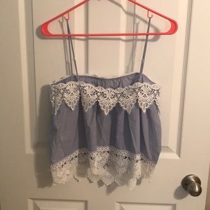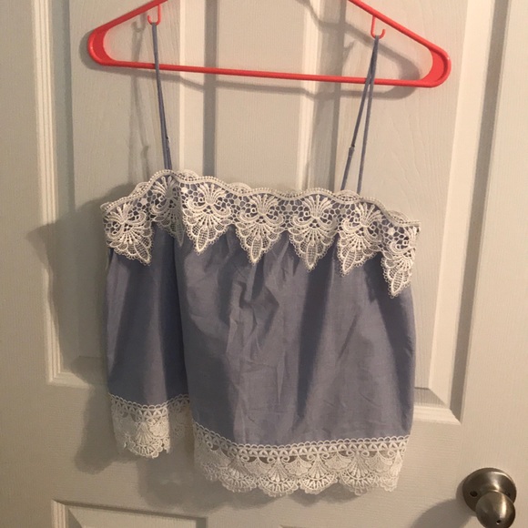 Light blue adjustable strap top. Lace detail around top and bottom. NWT.