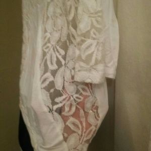 Beautiful off white Express top. Can be worn with jeans or with a skirt. For work or play. Has lacey details up both sides and arms and upper back. Excellent condition. Super cute and fashionable.