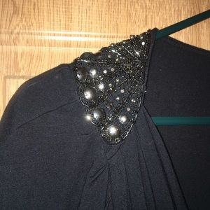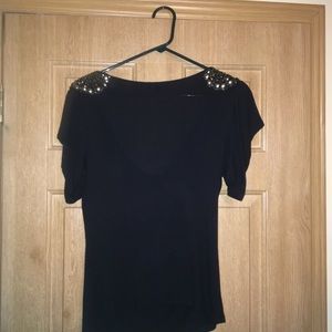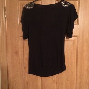 Size small express top. Plunging neck line. Black. Has beads and sequins on both shoulders. Very thin, nice and stretchy. Worn once.