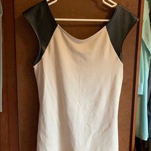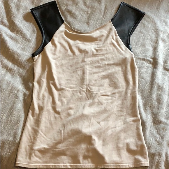 Medium Express top. Tan with black faux leather shoulders. Great condition worn once.