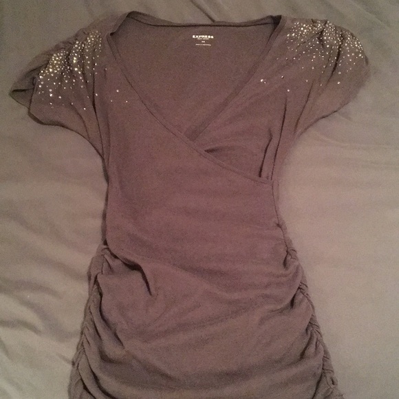 Gray express top, rhinestone shoulders. Size XS. Good used condition Make an offer