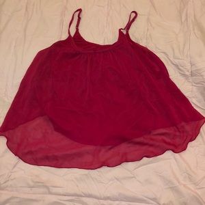 Hot/Fuchsia pink has mesh like overlay with built in cami
