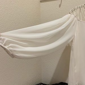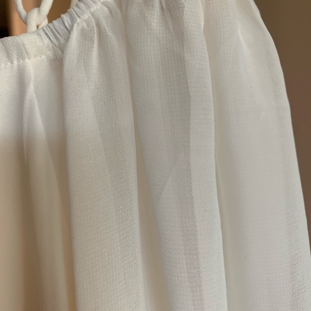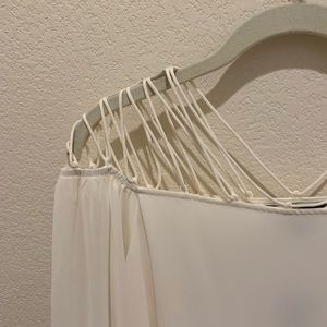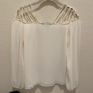 EXPRESS cream chiffon top, beautiful strapps an shoulders and collar area, bishop sleeves, size S. NWT