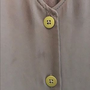 Hardly ever worn, minor spots on front shown in last picture and reflected in price. Spots can most likely come out. Has gold buttons down the front.