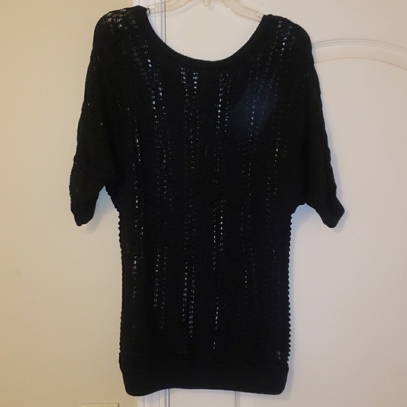 Black sweater with crochet pattern. Can be worn with/without a shirt underneath (as shown in last photo).
