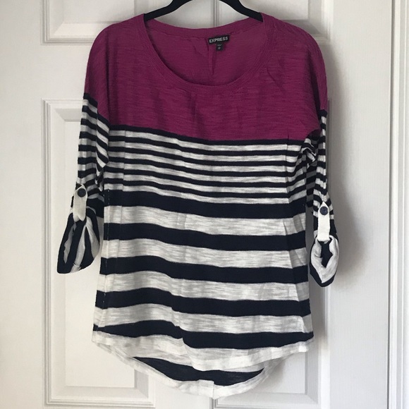 Express striped top comfortable and lightweight. Buttons on sleeves. Only worn a few times in great condition.