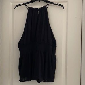 Black sleeveless top from express. High neck, waist clenched and flows at the bottom.