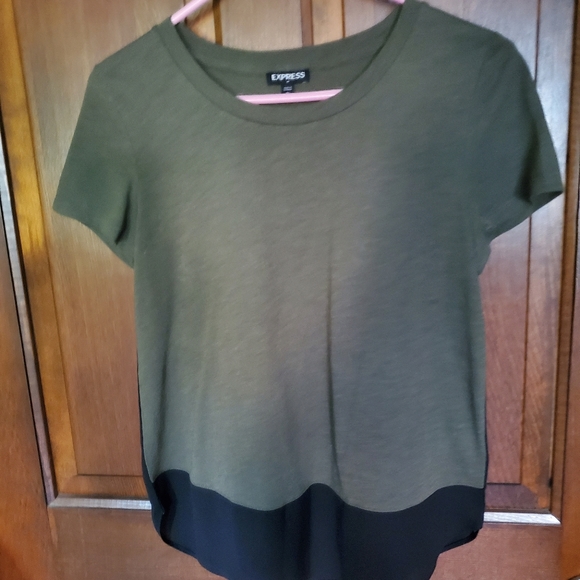 Color block with olive and black Body: 60% cotton, 40% polyester Trim: 100% polyester Machine washable Worn once