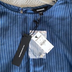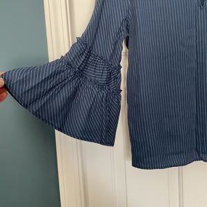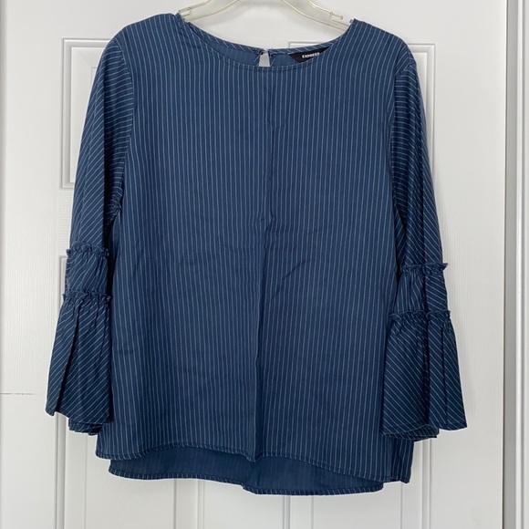 NWT! Express 3/4 length bell sleeve stop. The material looks like the color of denim, but it is thin, opaque and soft. There is no stretch. Size large.