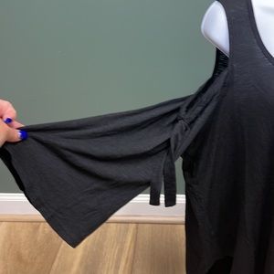 Light weight flowy top. Has loose fitting sleeves with tie detail. Cold shoulder. 21 inches armpit to armpit. New without tags.