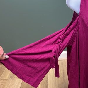 Loose fitting cold shoulder top. 3/4 flowy sleeve with tie detail. Armpit to armpit 21 1/2 inches.