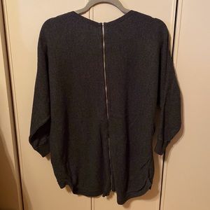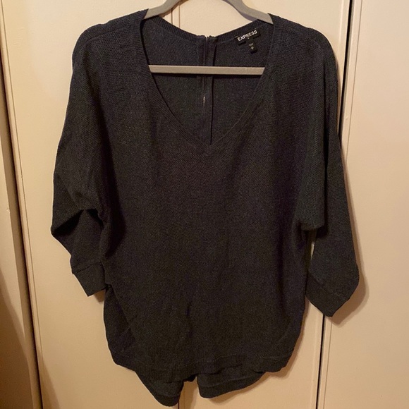 Express v neck top with 3/4 sleeves. Zipper down the back. Charcoal gray. Size medium
