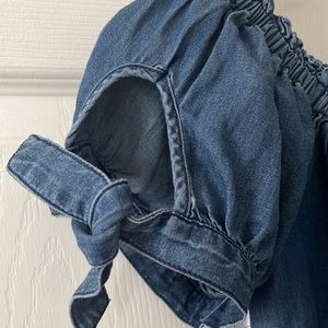 Gently worn 2 times. Beautiful blue denim color can be worn off the shoulders.