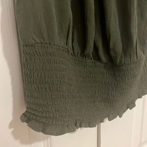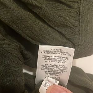 Gently worn 2 times. Beautiful military green color can be worn off the shoulders.