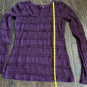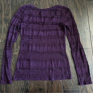 Express lace detail long sleeve tee size small. Has some light piling and signs of wear but otherwise looks really good, I just don’t fit in it anymore. Further away pictures are more color accurate but not 100% accurate.