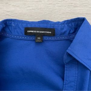 Excellent used condition. Royal blue Express top. Button down. Detail on the sleeve.