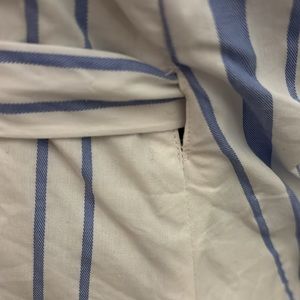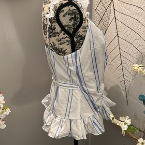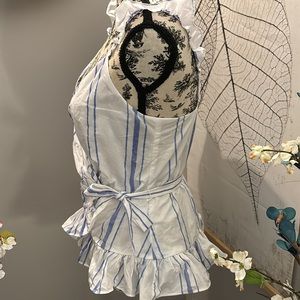 S, wrap top with adjustable straps ruffled all over white and blue block stripes fully lined in EUC by EXPRESS