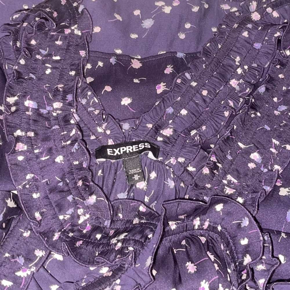 Express purple floral print ruffle blouse