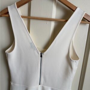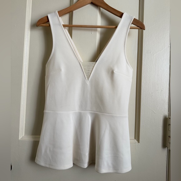 NWOT 2015 Express white or cream peplum style top Scuba feel Stretch Small mesh panel at bust Zipper neck on back