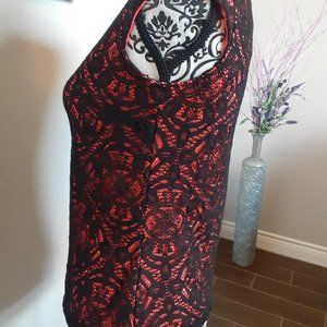 Gorgeous black lace overlay * lovely lace over a deep cantaloupe coral stretch snug fit top *This is so cute and sexy with jeans or a bandage skirt *Would fit small to a petite medium *Bundle to earn additional savings!!