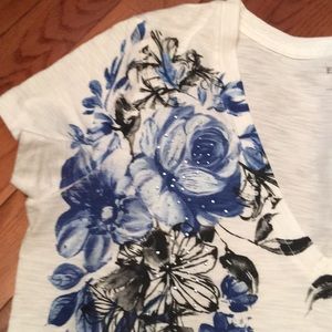 Express top new Never worn White with black and blue flowers gems intact Size medium