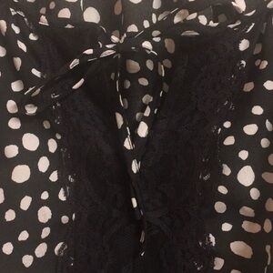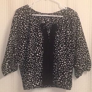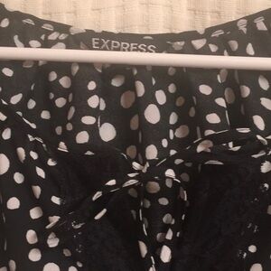 Express top women’s size xs black white polka dots blouse lightweight ai…
