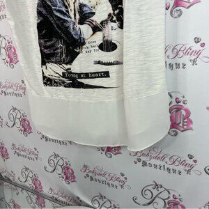 Express tshirt 2 tone mesh bottom hem bling White Graphic Short Sleeve Tee