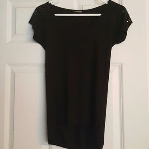 Black t-shirt made out of rayon material with black jewels on the shoulders in great condition!