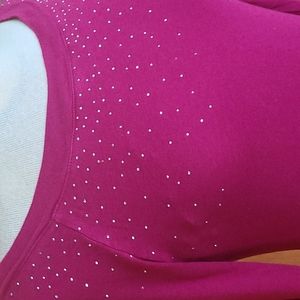 Magenta Fuchsia tunic from Express with silver rhinestone like sparkles around the neckline.