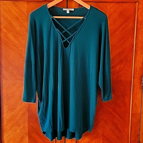 evergreen Size xl GUC express one eleven supersoft hi lo hem criss cross v neck
