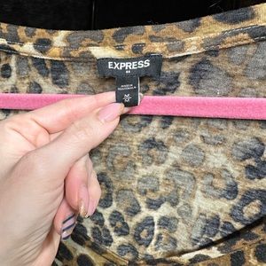 Leopard print, light weight and soft Express tunic tee. Worn once. Perfect with black leggings, jeans, with that extra length in back. Form fitting but designed to be spacey