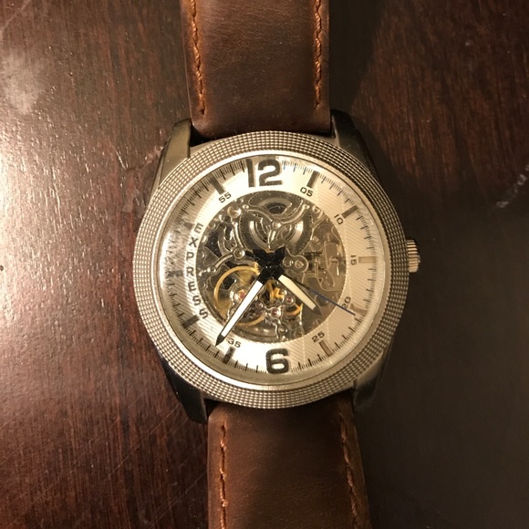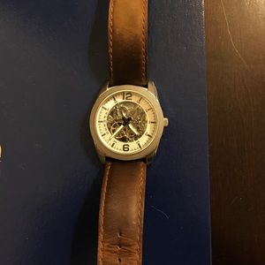 Brown band and silver watch face