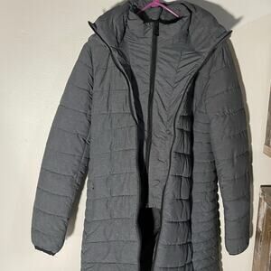 Woman’s express long grey puffer coat size small, brand new condition, Comfortable and warm great for fall and winter, cold weather