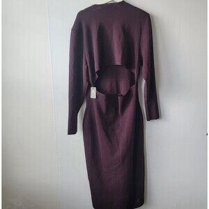 Express womens V-Neck Sweater Dress sz XL Padded Shoulder Back Cutout Midi