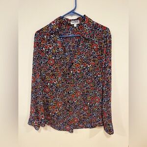 Express women’s Vibrant Floral Button Down Shirt - Red, Orange, Blue