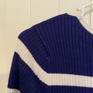 Women’s Express sweater. Top is navy blue & white striped pattern. Made of thin knit material that has tons of stretch to it! Sleeves are 1/2 length. Size large. Smoke free home!